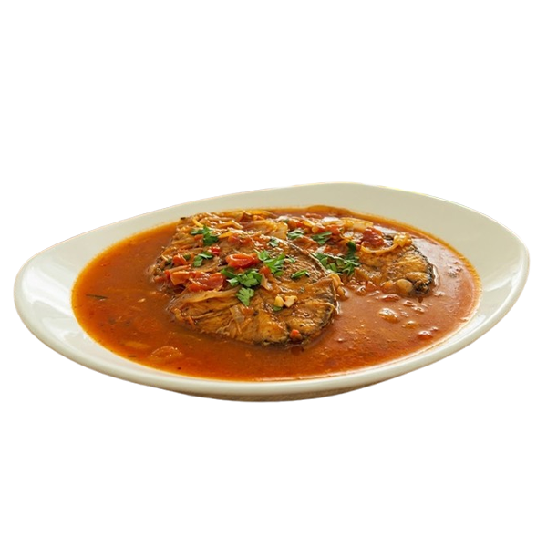 Fish fillet braised in a spiced tomato sauce with peppers and garlic.