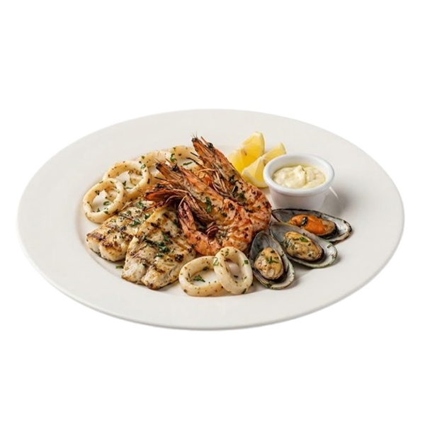 EN Grilled mixed seafood, fresh and perfectly seasoned.