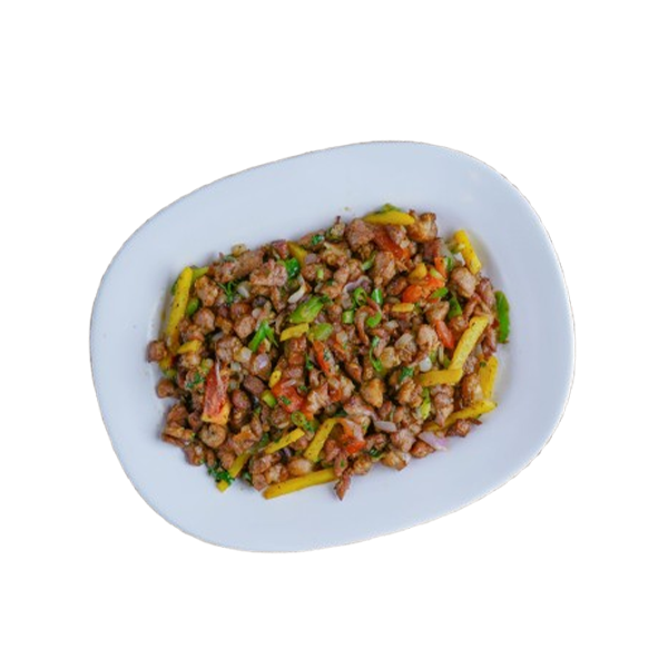 Beef oder lamb pieces cooked with vegetables, potatoes, and parsley.