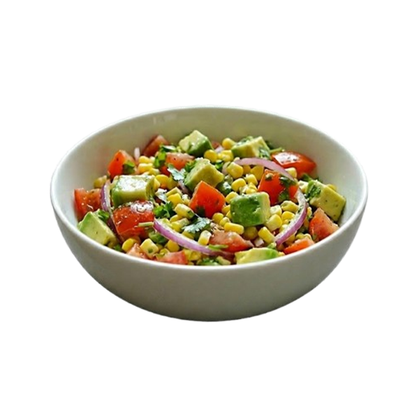 EN: Corn, mixed salad, tomatoes, dressing